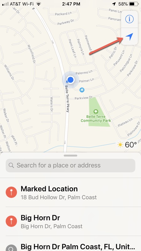 Belki de bu evi veya işletmeyi ilk defa ziyaret ediyorsunuz. Adresi arama kutusuna girmek yerine, üstteki Konum düğmesine dokunun.