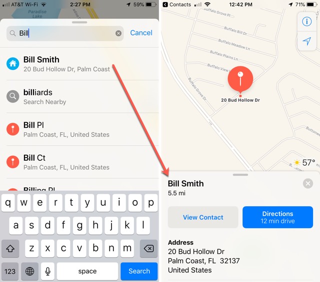 Seyahat ederken, mesafe veya yol tariflerini alabilirsiniz. Bir gönderiyi postalamak istediğinizde ve sokak adresini hatırlayamıyorsanız, haritada görebilirsiniz. Kişiler listenizden Apple Maps uygulamasına bağlamanın iki farklı yolu var.