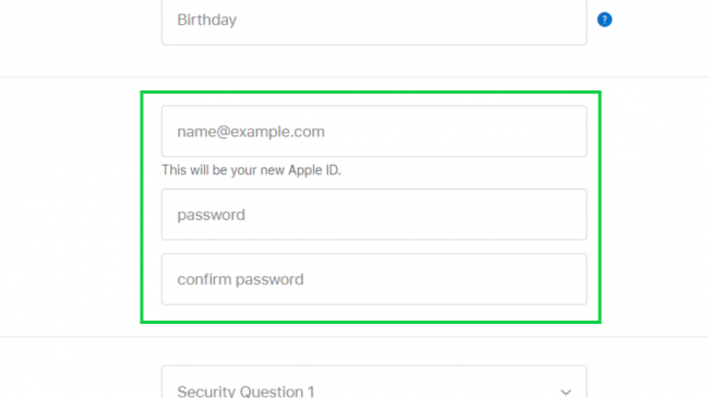 4. Adım: İstediğiniz Apple ID e-posta adresini oluşturun. Mevcut bir e-posta adresini kullanabilir veya Apple’a özgü yeni bir adres oluşturabilirsiniz.