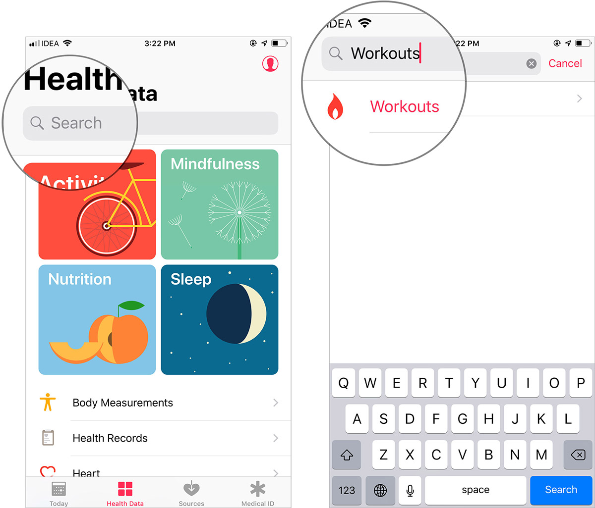 Adım 2. Şimdi alt menüden Sağlık Verileri üzerine dokunun.