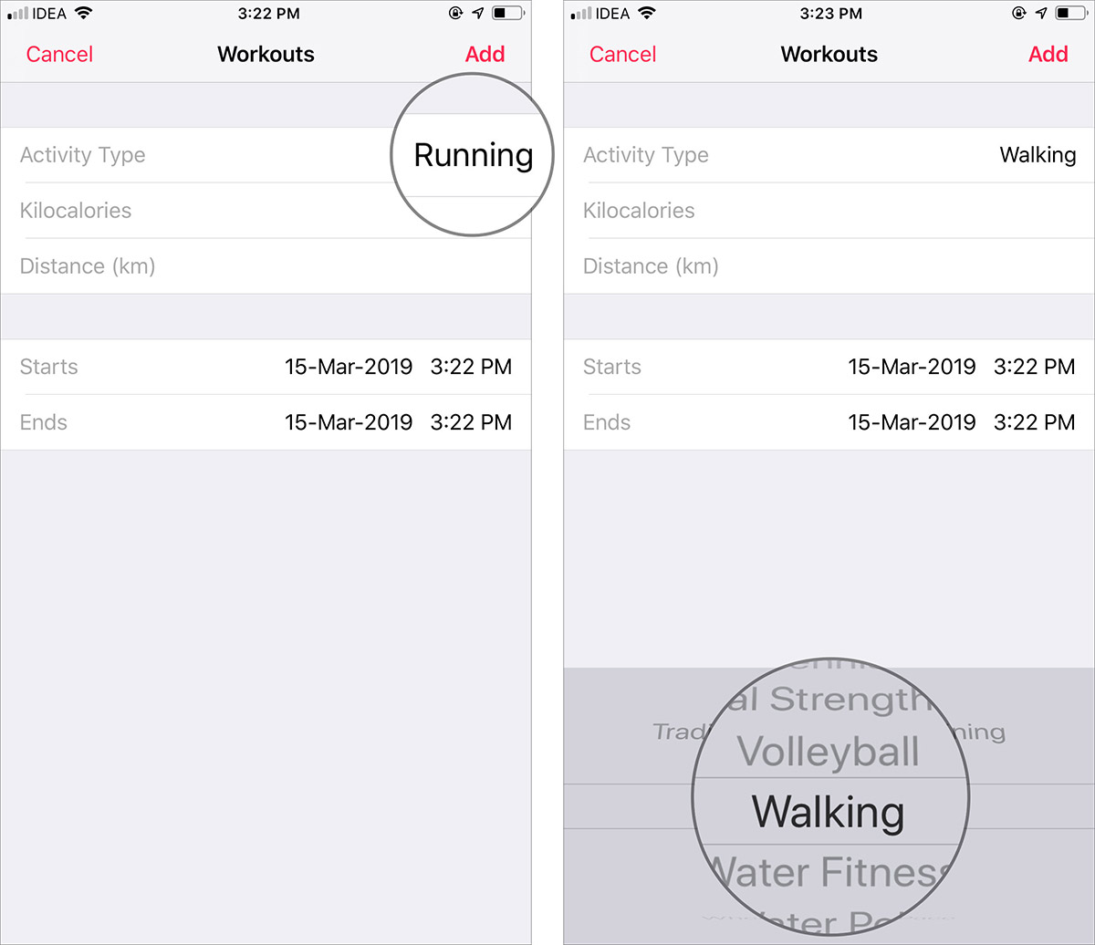 Adım 5. Burada, egzersiz türünüzü Aktivite Tipi seçeneğine dokunarak ekleyebilirsiniz.