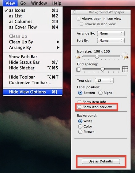 Yukarıda belirtilen Finder görünümlerinin her birini özelleştirebilirsiniz. Bunu yapmak için, menü çubuğundaki Finderdan Görünüm> Görünüm Seçeneklerini Göster i tıklayın. Seçenekler seçilen görünüme göre değişir. Örneğin, Simge Görünümü altında, diğer ayarların yanı sıra simge boyutunu, ızgara alanını ve metin boyutunu da ayarlayabilirsiniz. Bu arada, Galeri Görünümü nün altında, küçük resim boyutunu ve daha fazlasını değiştirebilirsiniz.