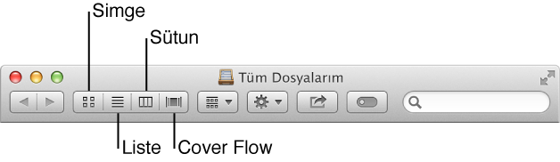 Menü çubuğundaki Görünüm menüsünü kullanarak dosyaların Finder pencerelerinde nasıl görüntüleneceğini değiştirebilirsiniz. Seçenekler simgeler, listede, sütunlarda veya galeride bulunur. Dört görünümün tümü de içeriği tür, tarih veya boyuta göre sıralamanıza izin verir.