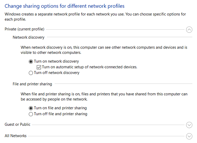 3. Ağ ayarlarınızı değiştirin altında Paylaşım seçeneklerini seçin.