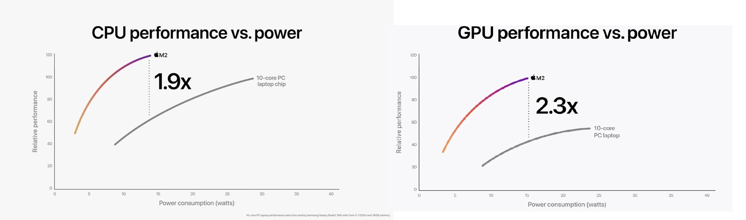 Öte yandan, M2 MacBook Air iki yapılandırmayla gelir: 8 çekirdekli GPU lu alt model ve 10 çekirdekli GPU lu daha güçlü model. Yeni çipin, aynı miktarda güç tüketirken, önceki tasarıma göre %18 daha iyi CPU ve %25 daha iyi GPU performansı sağladığı söyleniyor.