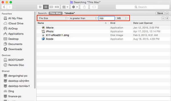Finder > Dosya > Yeni Akıllı Klasör > "+" işaretine tıkla.