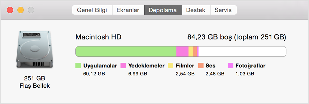 🔹 Git:  Menü > Bu Mac Hakkında > Depolama > Yönet...